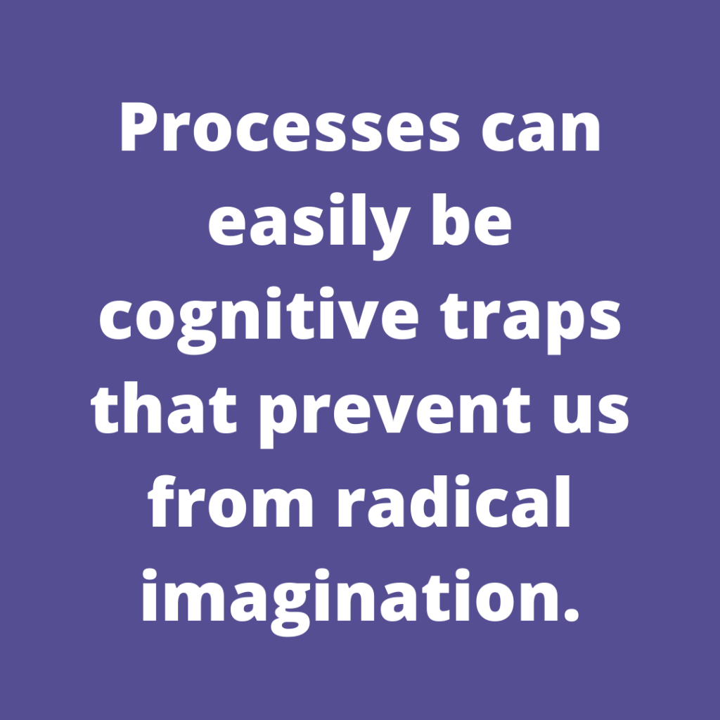 I think we have lots of reasons why others are the problem in how we show up. Too infrequently are we stepping back to see whether or not we are showing up in the way we are asked and needed. Although it’s scary to show up without the prescription, isn’t it also comforting? Not everything has to fit into the process we’ve established; after all, haven’t we learned that processes can easily be cognitive traps that prevent us from radical imagination?