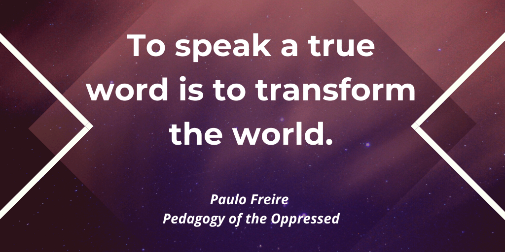 I see the role of the evaluator as to both CREATE & FACILITATE space for genuine collaborative reflective practice. For taking the collaborative learning process and truly embracing it. We are facilitators of the “hard” questions – What actually happened? What went well? What didn’t go so well? Where do we go next? How are we serving our community? How could we serve our community better? Who has power and who ought to have power? Hard questions, but the exact needed questions for us to make informed decisions for societal betterment. As is shared in the quote above, to engage in dialogue is to be invested and committed to collaborative processes that will bring us to a point that we could not have gotten to alone. It means that you bring knowledge and I bring knowledge, and our intentional engagement together will move us into transformation. But that requires intention.